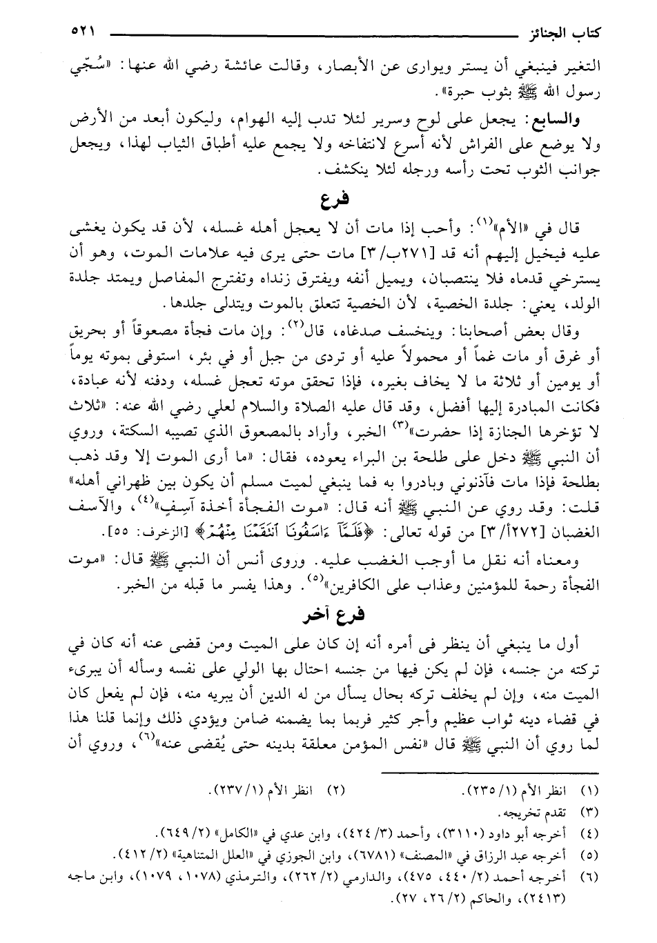 وقال بعض أصحابنا: وينخسف صدغاه، قال: وإن مات فجأة مصعوقاً أو بحريق أو غرق أو مات غماً أو محمولاً عليه أو تردى من جبل أو في بثر، استوفى بموته يوما أو يومين أو ثلاثة ما لا يخاف بغيره، فإذا تحقق موته تعجل غسله، ودفنه لأنه عبادة، فكانت المبادرة إليها أفضل، وقد قال عليه الصلاة والسلام لعلي رضي الله عنه: "ثلاث لا تؤخرها الجنازة إذا حضرت" الخبر، وأراد بالمصعوق الذي تصيبه السكتة، وروي أن النبي - صلى الله عليه وسلم - دخل على طلحة بن البراء يعوده، فقال: "ما أرى الموت إلا وقد ذهب بطلحة فإذا مات فآذنوني وبادروا به فما ينبغي لميت مسلم أن يكون بين ظهراني أهله" قلت: وقد روي عن النبي - صلى الله عليه وسلم - أنه قال: "موت الفجأة أخدة آسف"، والآسف الغضبان [272 أ / 3] من قوله تعالى: {فَلَمَّا آسَفُونَا انتَقَمْنَا مِنْهُمْ} [الزخرف: 55].