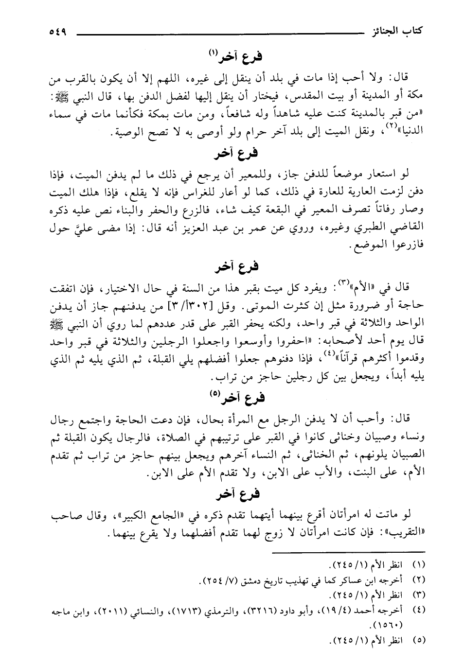 قال: وأحب أن لا يدفن الرجل مع المرأة بحال، فإن دعت الحاجة واجتمع رجال ونساء وصبيان وخناثى كانوا في القبر على ترتيبهم في الصلاة، فالرجال يكون القبلة ثم الصبيان يلونهم، ثم الخناثى، ثم النساء آخرهم ويجعل بينهم حاجز من تراب ثم تقدم الأم، على البنت، والأب على الابن، ولا تقدم الأم على الابن.