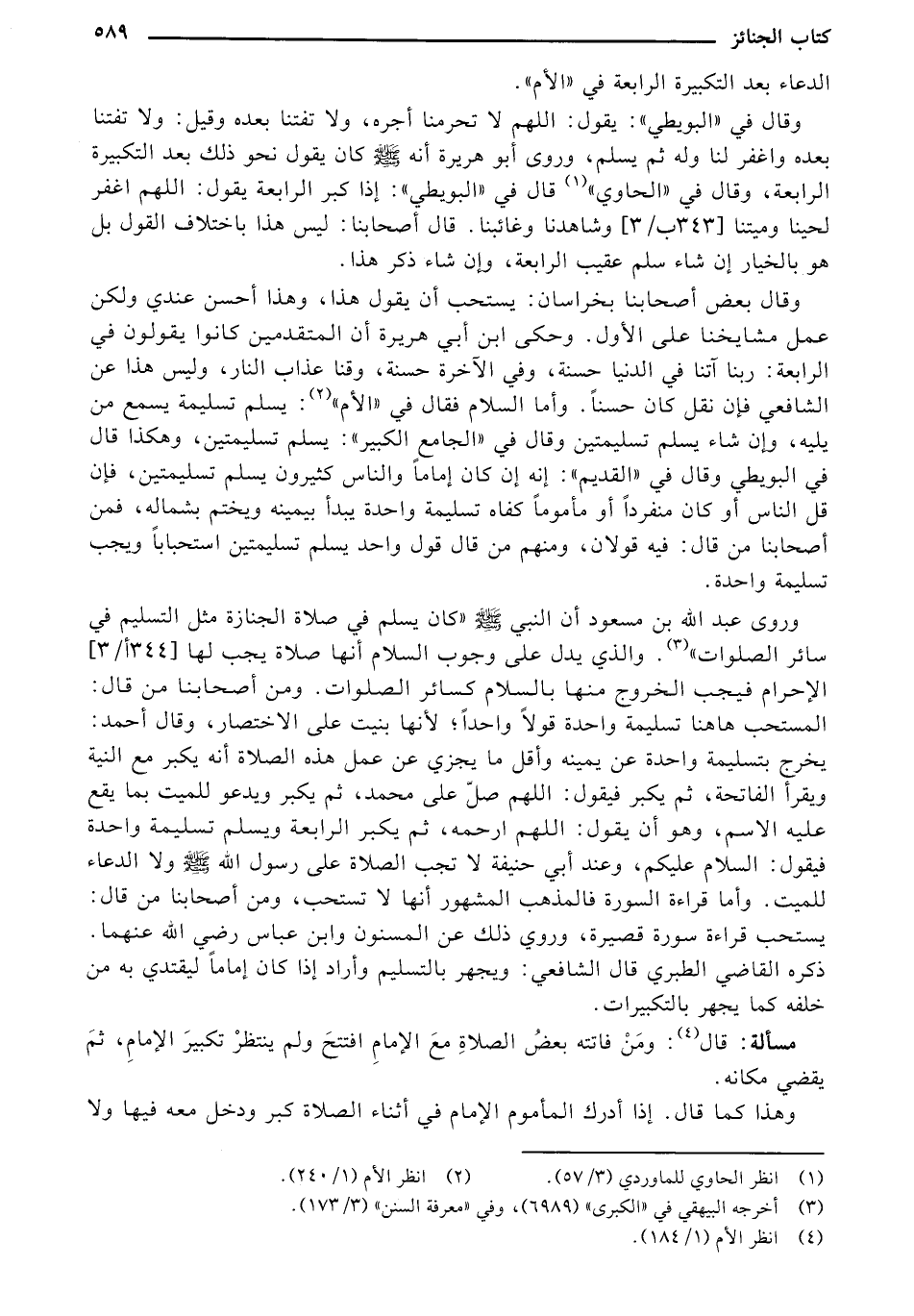 الدعاء بعد التكبيرة الرابعة في "الأم".