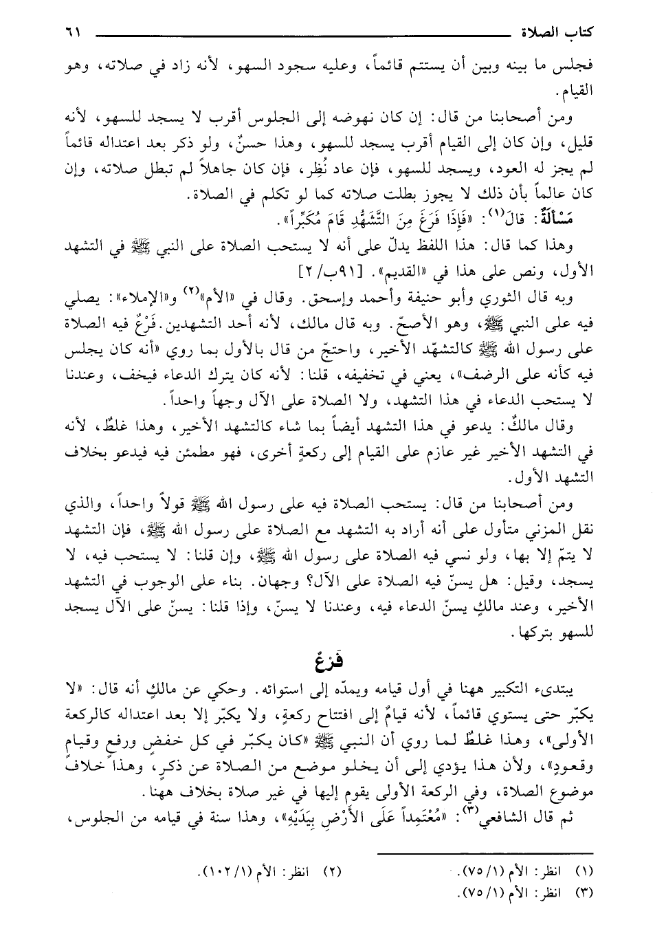 مسألة: قال: "فإذا فرغ من التشهد قام مكبرًا".