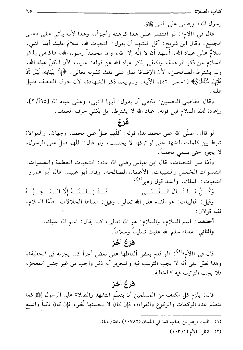 قال: يلزم كل مكلف من المسلمين أن يتعلم التشهد والصلاة على الرسول - صلى الله عليه وسلم - كما يتعلم عدد الركعات والركوع والقراءة، فإن كان لا يحسنها نُظر، فإن كان ذكيًا واتسع