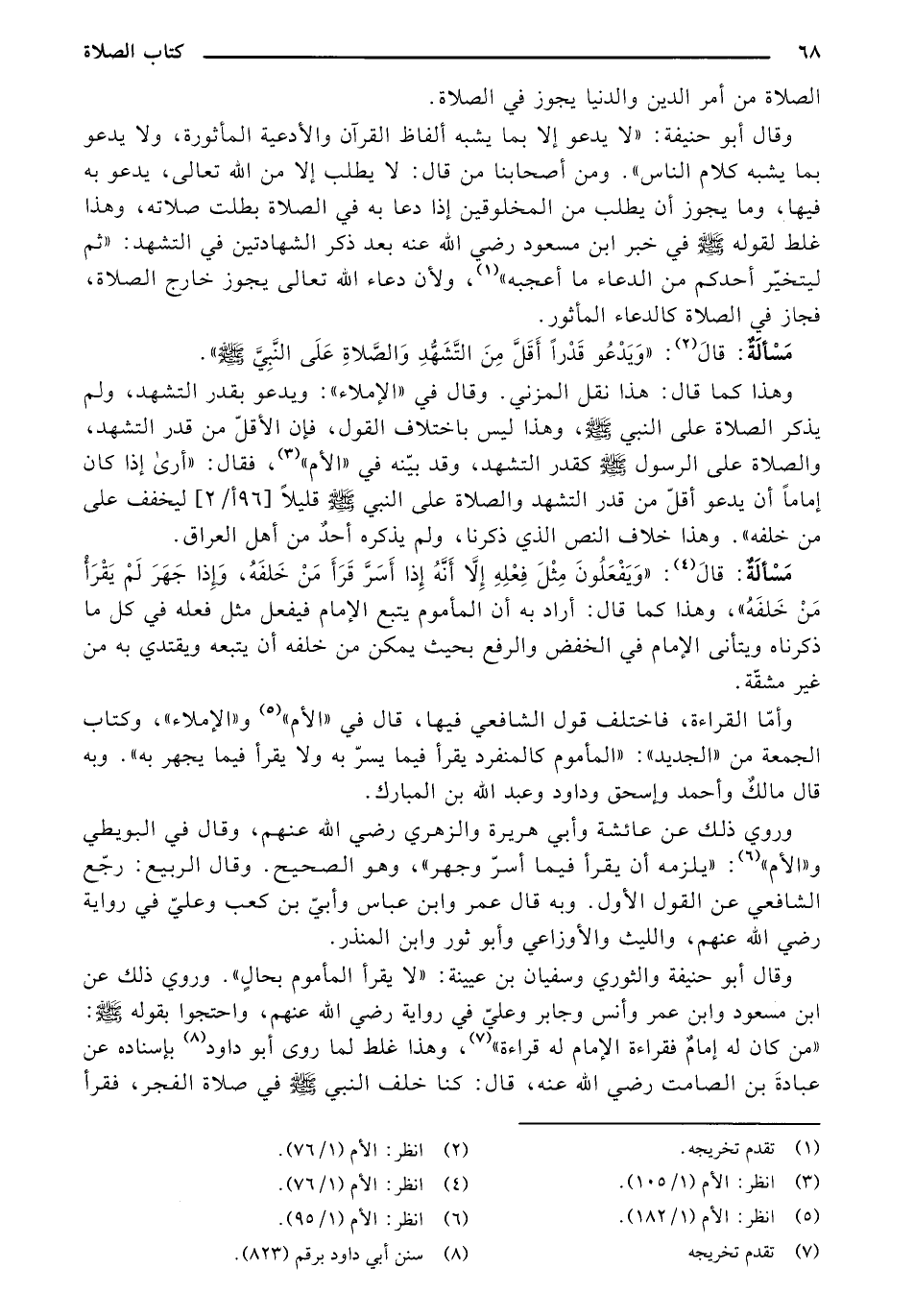 وهذا كما قال: هذا نقل المزني. وقال في "الإملاء": ويدعو بقدر التشهد، ولم يذكر الصلاة على النبي - صلى الله عليه وسلم -، وهذا ليس باختلاف القول، فإن الأقل من قدر التشهد، والصلاة على الرسول - صلى الله عليه وسلم - كقدر التشهد، وقد بيّنه في "الأم"، فقال: "أرى إذا كان إمامًا أن يدعو أقل من قدر التشهد والصلاة على النبي - صلى الله عليه وسلم - قليلًا [96 أ/ 2] ليخفف على من خلفه". وهذا خلاف النص الذي ذكرنا، ولم يذكره أحدٌ من أهل العراق.