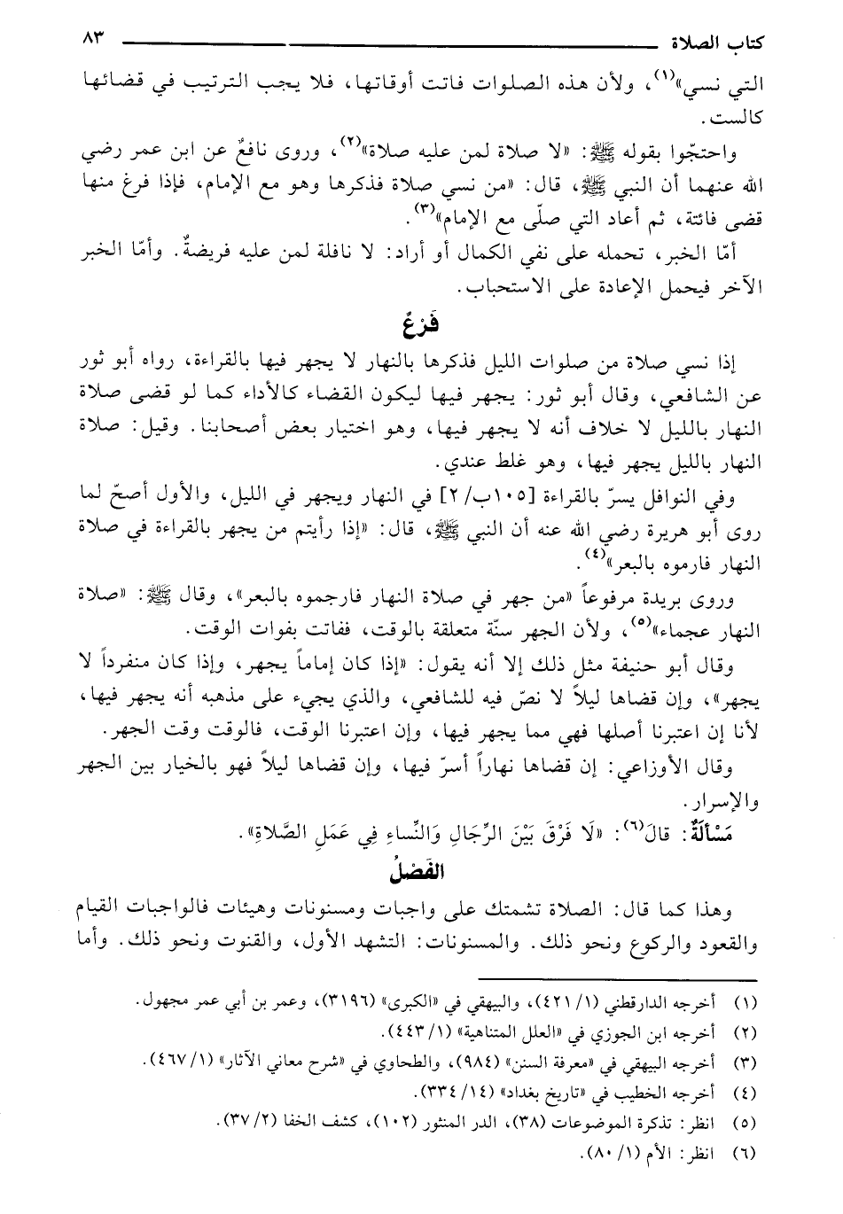 واحتجّوا بقوله - صلى الله عليه وسلم -: "لا صلاة لمن عليه صلاة"، وروى نافعٌ عن ابن عمر رضي الله عنهما أن النبي - صلى الله عليه وسلم -، قال: "من نسي صلاة فذكرها وهو مع الإمام، فإذا فرغ منها قضى فائتة، ثم أعاد التي صلّى مع الإمام".