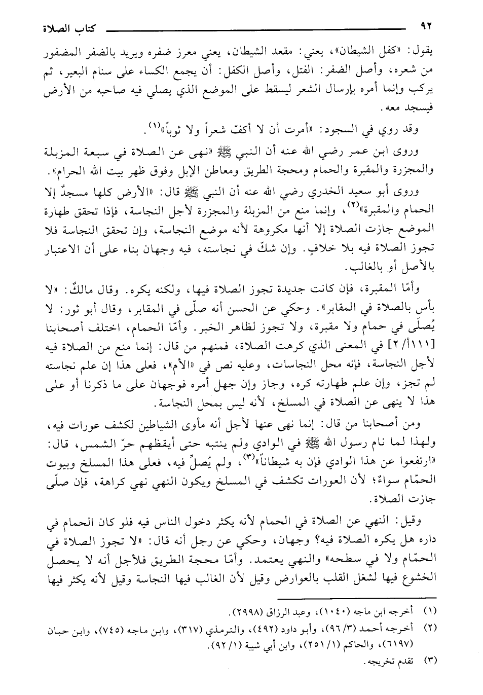 وروى أن عمر رضي الله عنه أن النبي - صلى الله عليه وسلم - "نهى عن الصلاة في سبعة المزبلة والمجزرة والمقبرة والحمام ومحجة الطريق ومعاطن الإبل وفوق ظهر بيت الله الحرام".
