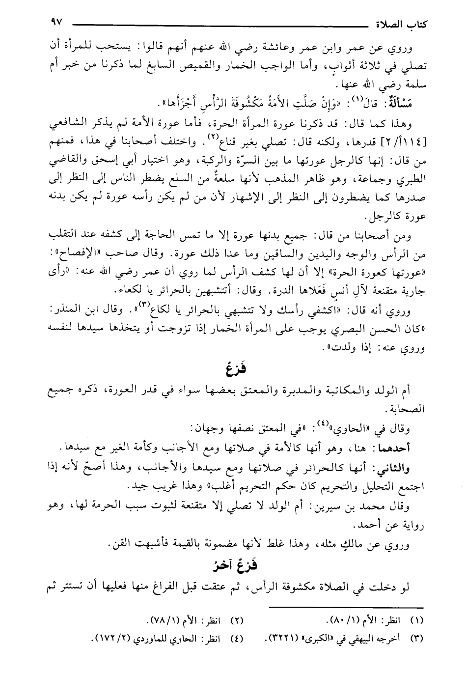والثاني: أنها كالحرائر في صلاتها ومع سيدها والأجانب، وهذا أصحّ لأنه إذا اجتمع التحليل والتحريم كان حكم التحريم أغلب" وهذا غريب جيد.