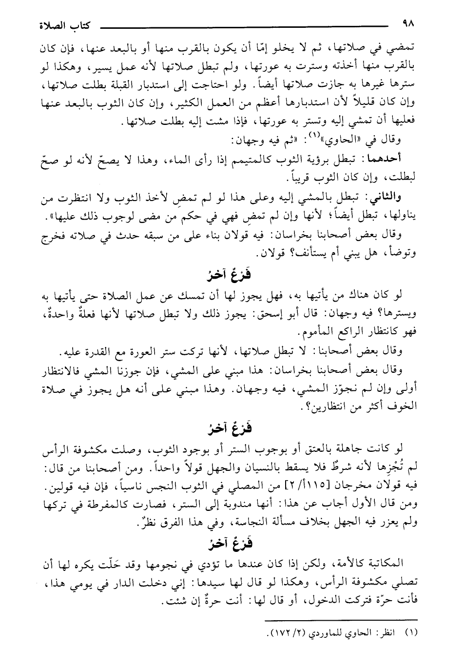 ومن قال الأول أجاب عن هذا: أنها مندوبة إلى الستر، فصارت كالمفرطة في تركها ولم يعزر فيه الجهل بخلاف مسألة النجاسة، وفي هذا الفرق نظرٌ.