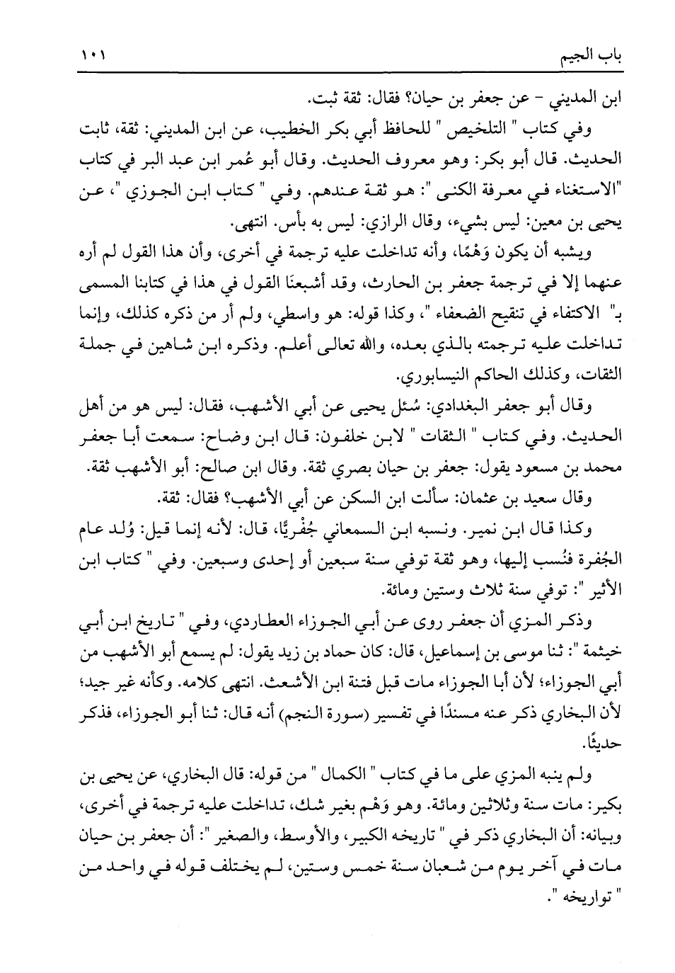 ابن المديني- عن جعفر بن حيان؟ فقال: ثقة ثبت.