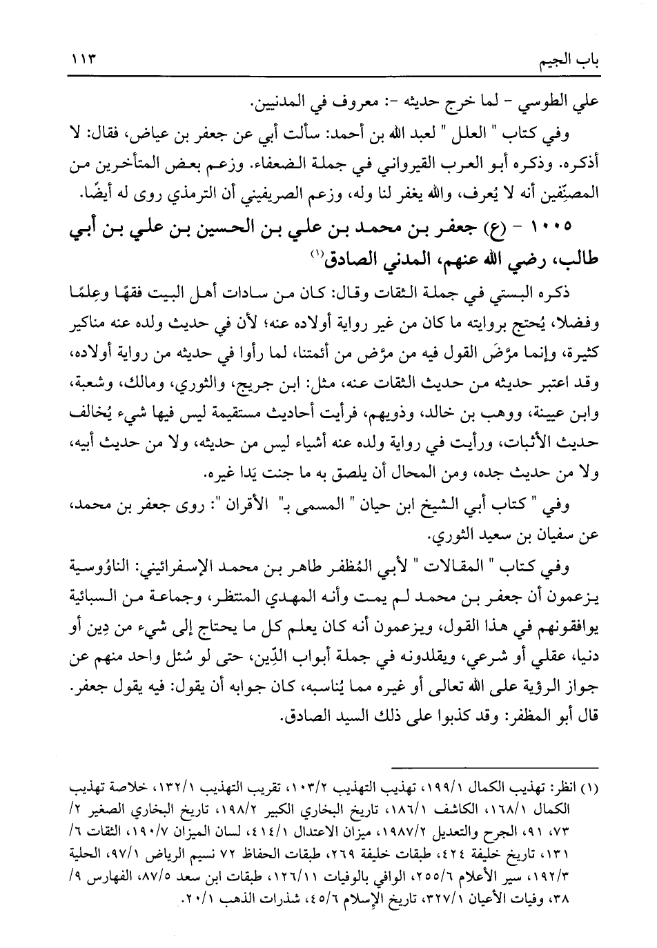 ١٠٠٥ - (ع) جعفر بن محمد بن علي بن الحسين بن علي بن أبي طالب، رضي اللَّه عنهم، المدني الصادق (¬١)