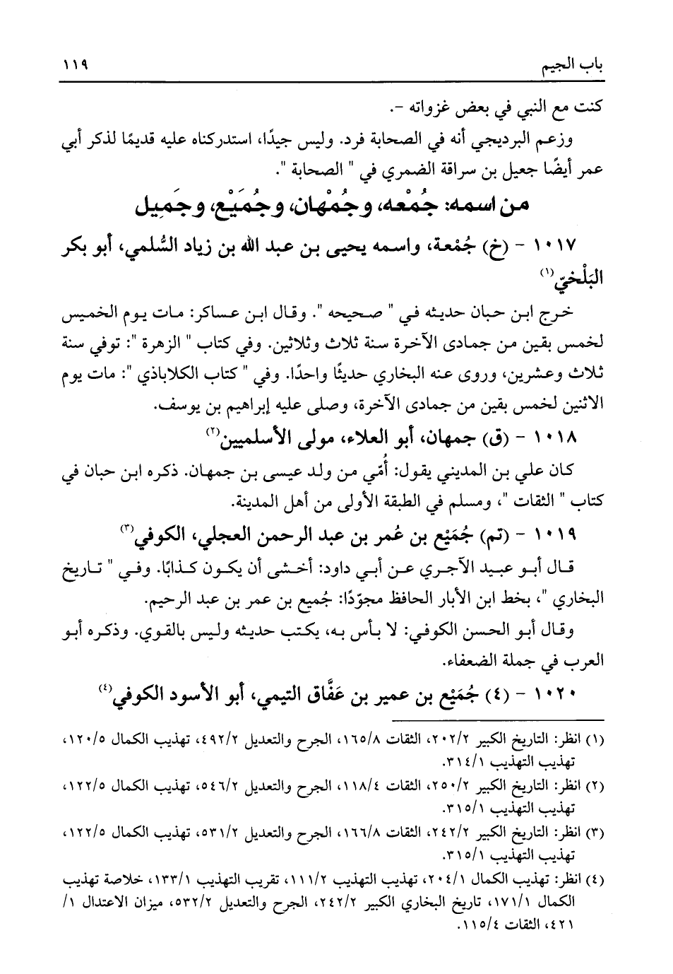 ١٠١٩ - (تم) جُمَيْع بن عُمر بن عبد الرحمن العجلي، الكوفي (¬٣)