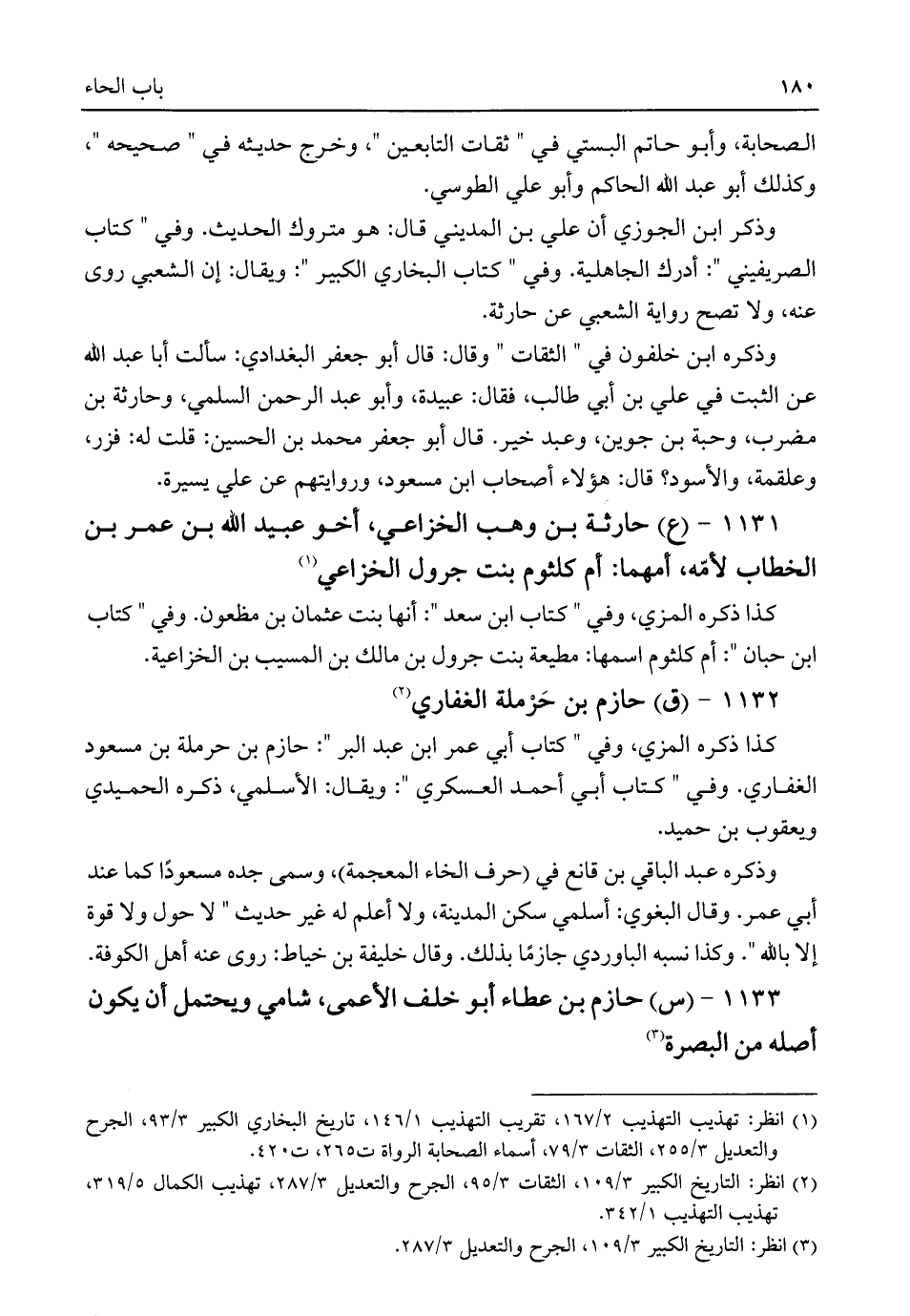 ١١٣١ - (ع) حارثة بن وهب الخزاعي، أخو عبيد اللَّه بن عمر بن الخطاب لأمّه، أمهما: أم كلثوم بنت جرول الخزاعي (¬١)