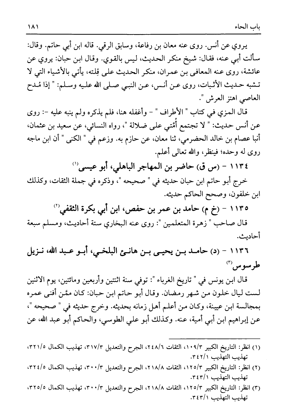 (¬١) انظر: التاريخ الكبير ٣/ ١٠٩، الثقات ٦/ ٢٤٨، الجرح والتعديل ٣/ ٣١٧، تهذيب الكمال ٥/ ٣٢١، تهذيب التهذيب ١/ ٣٤٢.