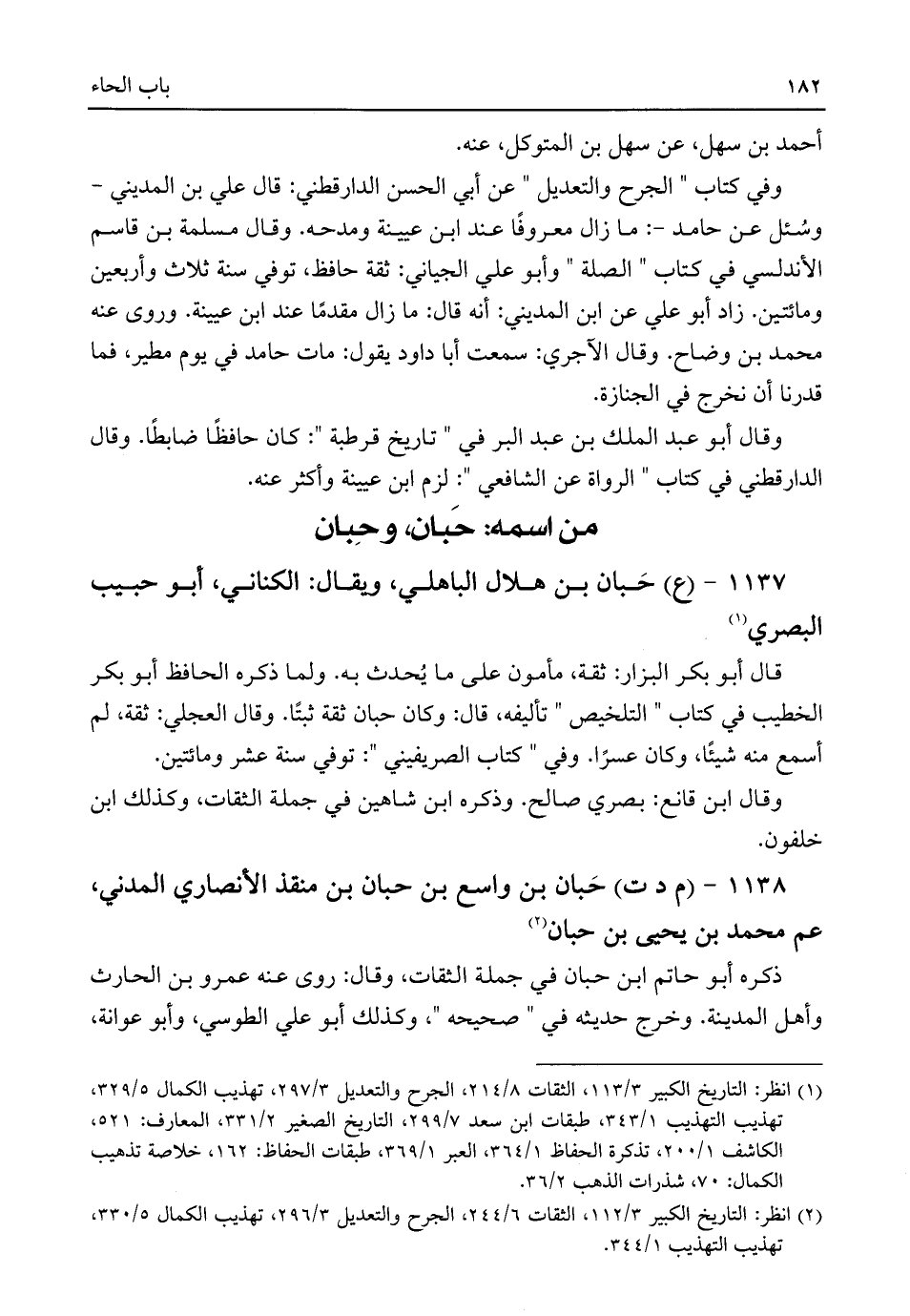(¬٢) انظر: التاريخ الكبير ٣/ ١١٢، الثقات ٦/ ٢٤٤، الجرح والتعديل ٣/ ٢٩٦، تهذيب الكمال ٥/ ٣٣٠، تهذيب التهذيب ١/ ٣٤٤.
