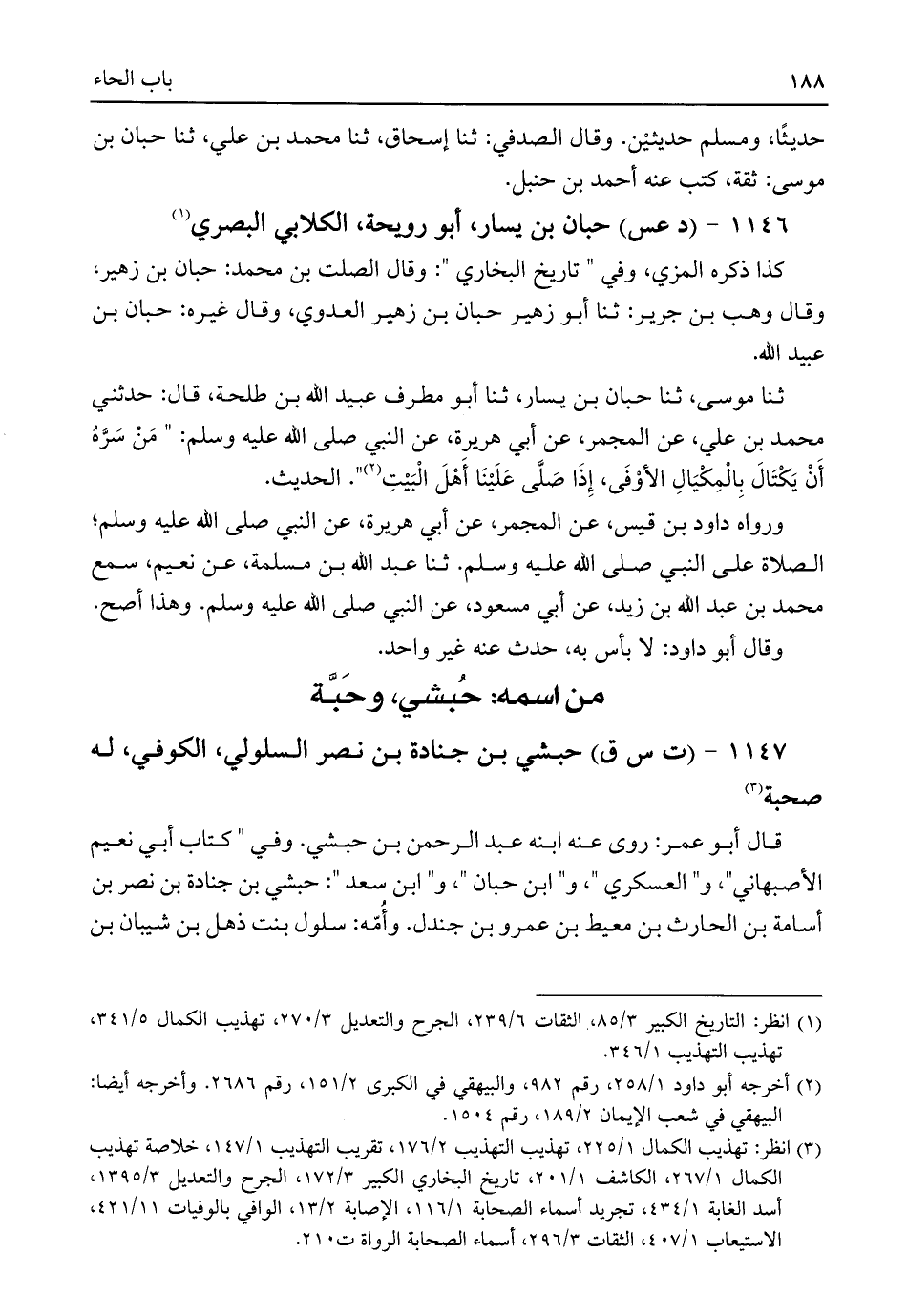 ١١٤٧ - (ت س ق) حبشي بن جنادة بن نصر السلولي، الكوفي، له صحبة (¬٣)