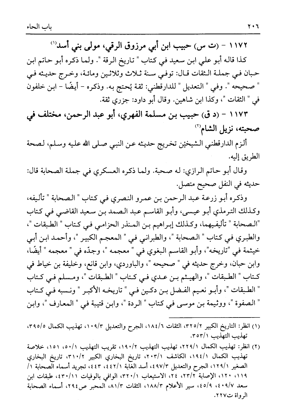 ١١٧٣ - (د ق) حبيب بن مسلمة الفهري، أبو عبد الرحمن، مختلف في صحبته، نزيل الشام (¬٢)
