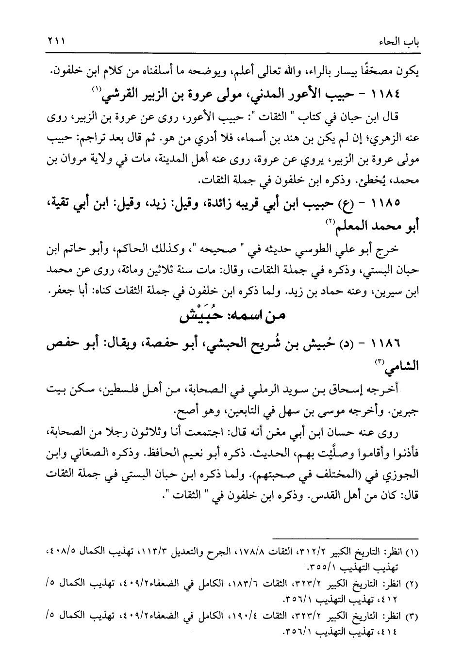 (¬٣) انظر: التاريخ الكبير ٢/ ٣٢٣، الثقات ٤/ ١٩٠، الكامل في الضعفاء ٢/ ٤٠٩، تهذيب الكمال ٥/ ٤١٤، تهذيب التهذيب ١/ ٣٥٦.