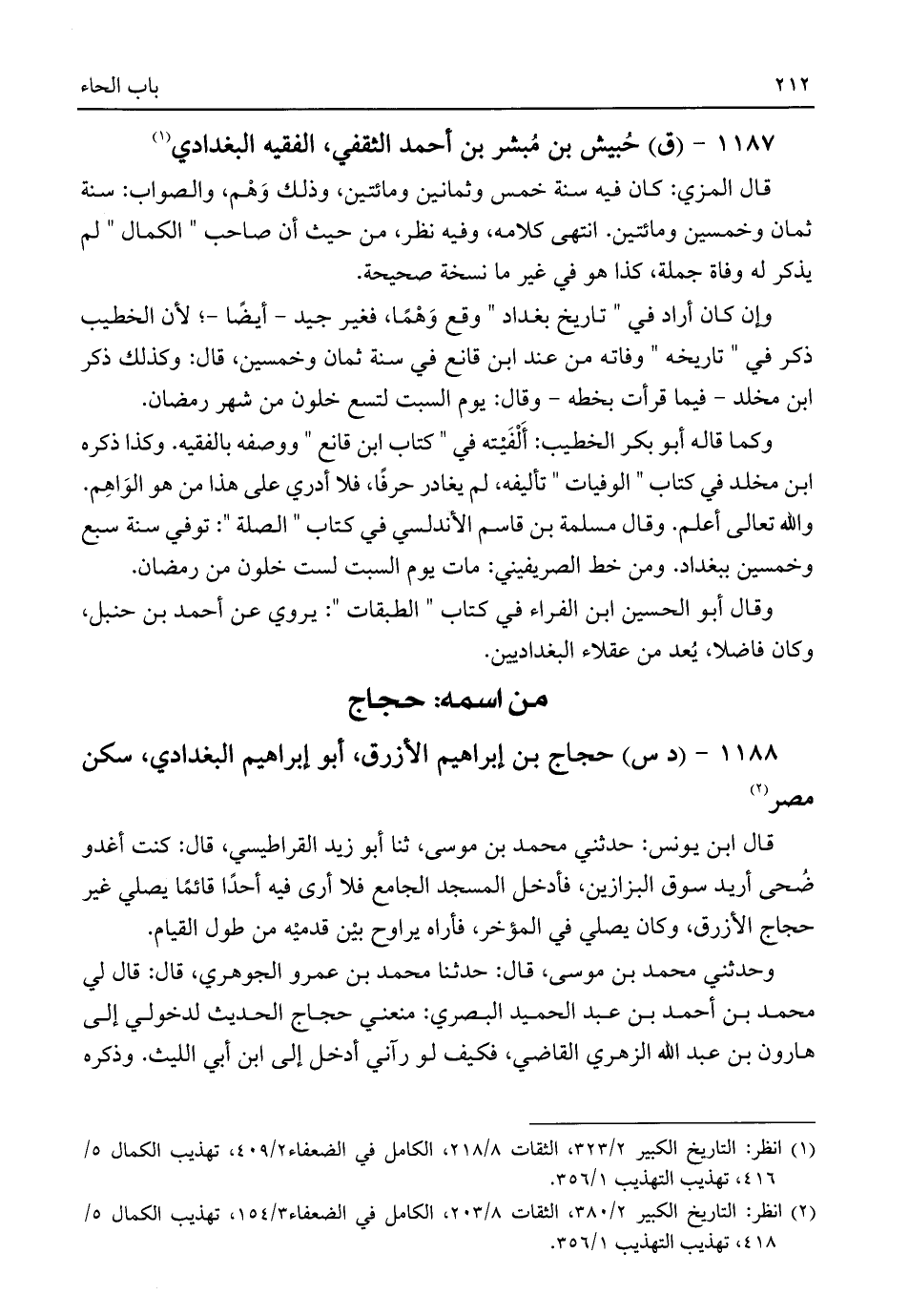 ١١٨٧ - (ق) حُبيش بن مُبشر بن أحمد الثقفي، الفقيه البغدادي (¬١)