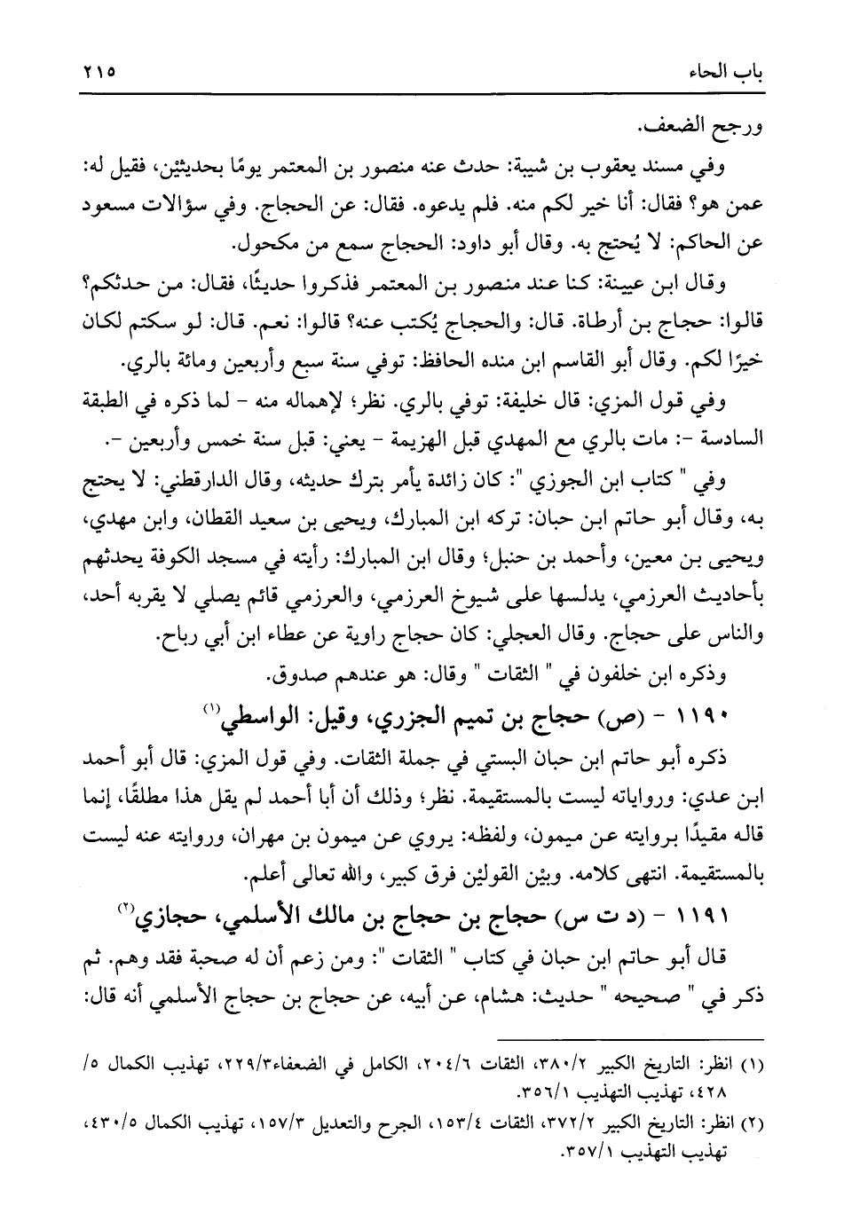 ١١٩٠ - (ص) حجاج بن تميم الجزري، وقيل: الواسطي (¬١)