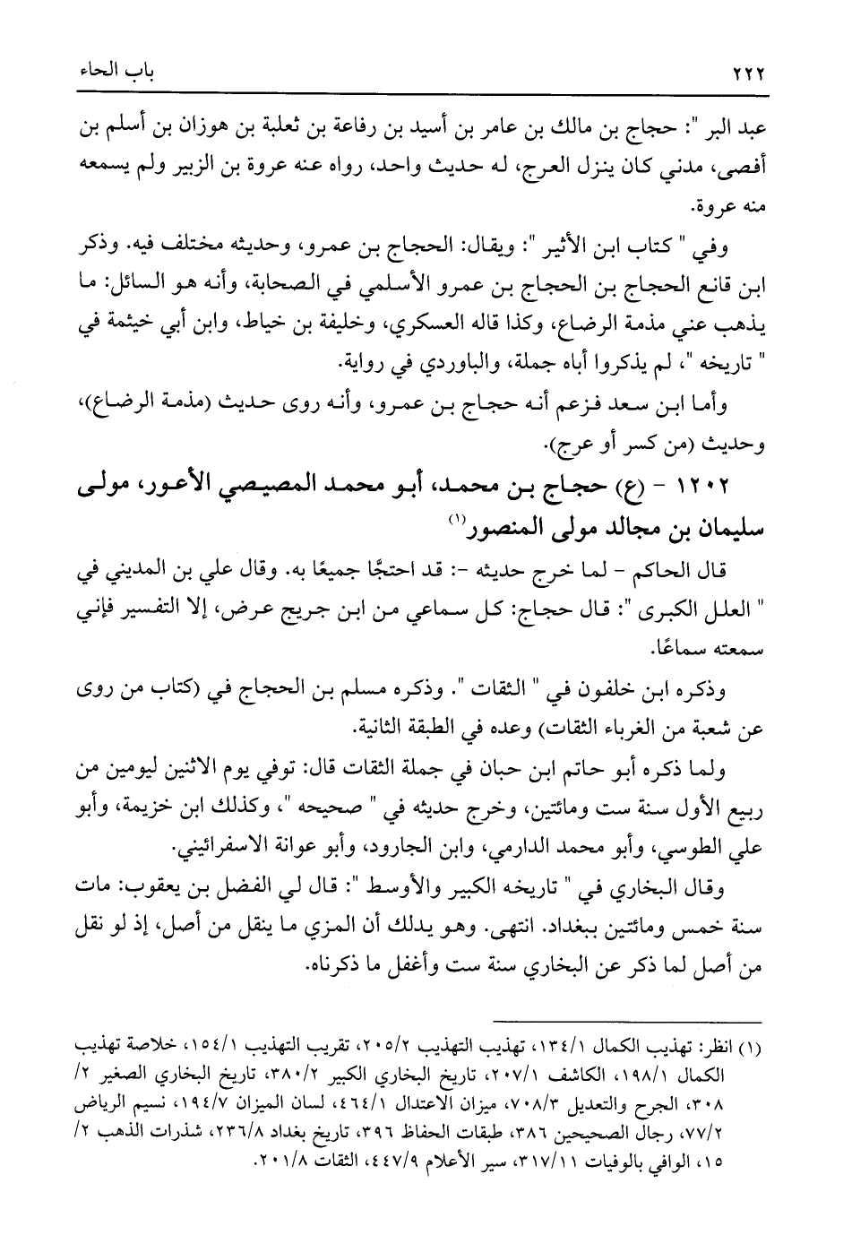 (¬١) انظر: تهذيب الكمال ١/ ١٣٤، تهذيب التهذيب ٢/ ٢٠٥، تقريب التهذيب ١/ ١٥٤، خلاصة تهذيب الكمال ١/ ١٩٨، الكاشف ١/ ٢٠٧، تاريخ البخاري الكبير ٢/ ٣٨٠، تاريخ البخاري الصغير ٢/ ٣٠٨، الجرح والتعديل ٣/ ٧٠٨، ميزان الاعتدال ١/ ٤٦٤، لسان الميزان ٧/ ١٩٤، نسيم الرياض ٢/ ٧٧، رجال الصحيحين ٣٨٦، طبقات الحفاظ ٣٩٦، تاريخ بغداد ٨/ ٢٣٦، شذرات الذهب ٢/ ١٥، الوافي بالوفيات ١١/ ٣١٧، سير الأعلام ٩/ ٤٤٧، الثقات ٨/ ٢٠١.