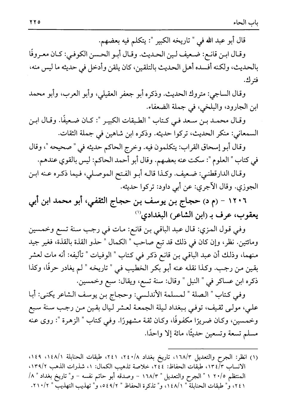 ١٢٠٦ - (م د) حجاج بن يوسف بن حجاج الثقفي، أبو محمد ابن أبي يعقوب، عرف بـ (ابن الشاعر) البغدادي (¬١)