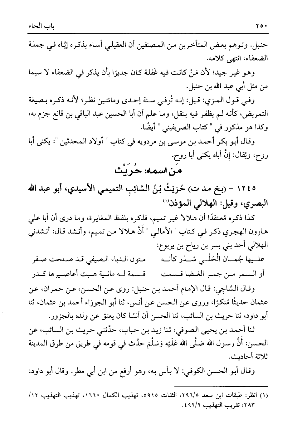 حنبل. وتوهم بعض المتأخرين من المصنفين أن العقيلي أساء بذكره إيَّاه في جملة الضعفاء، انتهى كلامه.