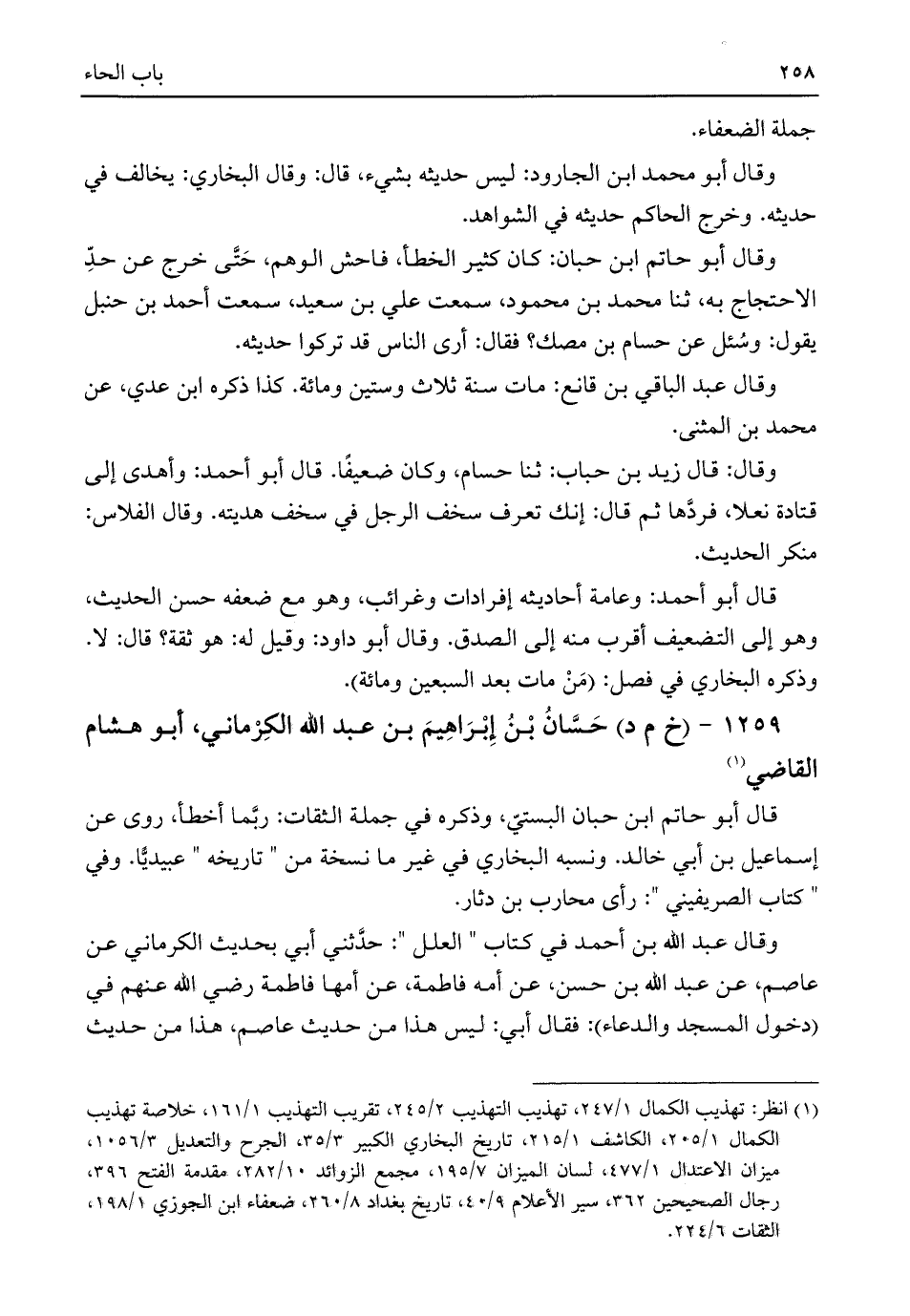 ١٢٥٩ - (خ م د) حَسَّانُ بْنُ إِبْرَاهِيمَ بن عبد اللَّه الكِرْماني، أبو هشام القاضي (¬١)