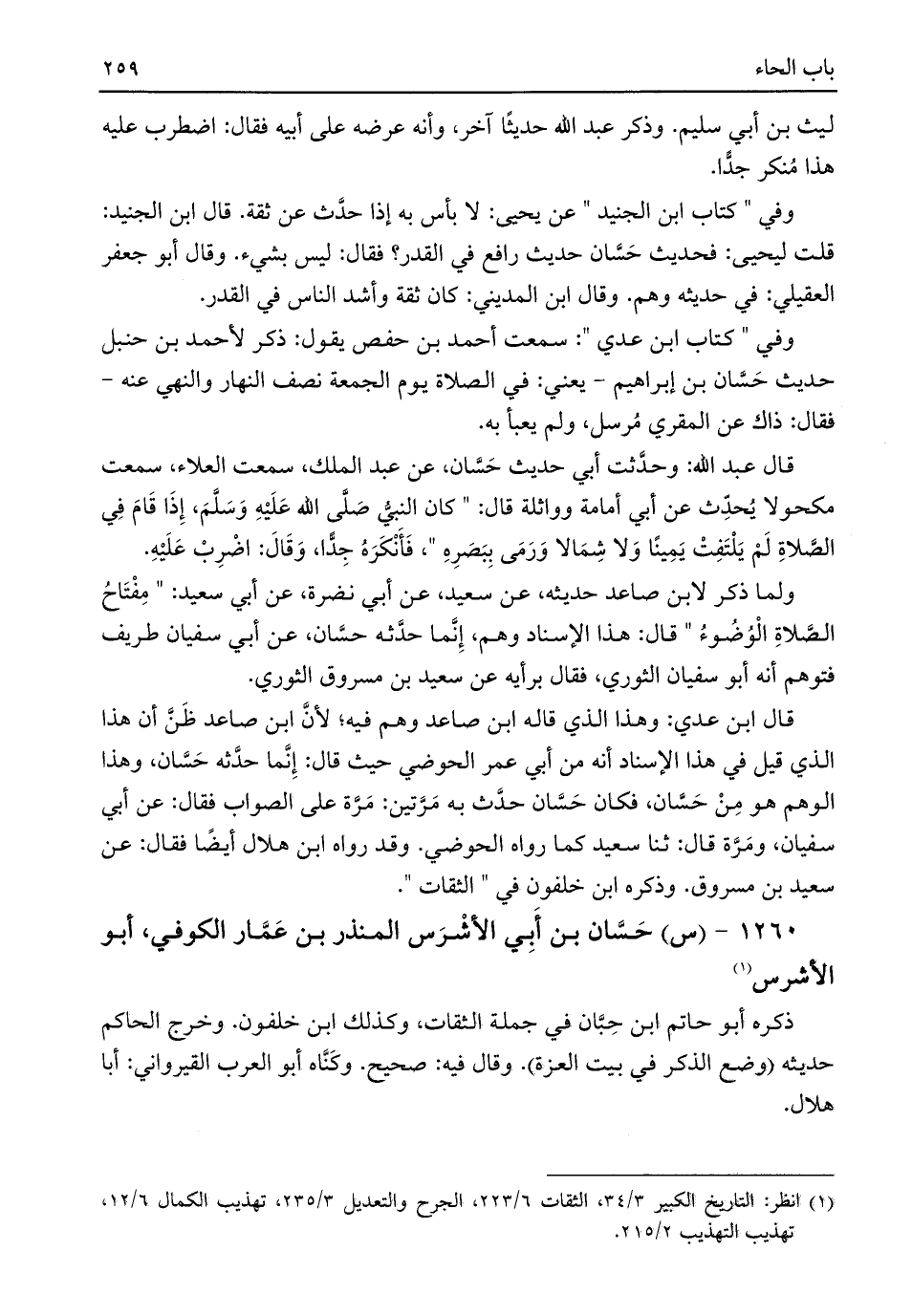 (¬١) انظر: التاريخ الكبير ٣/ ٣٤، الثقات ٦/ ٢٢٣، الجرح والتعديل ٣/ ٢٣٥، تهذيب الكمال ٦/ ١٢، تهذيب التهذيب ٢/ ٢١٥.