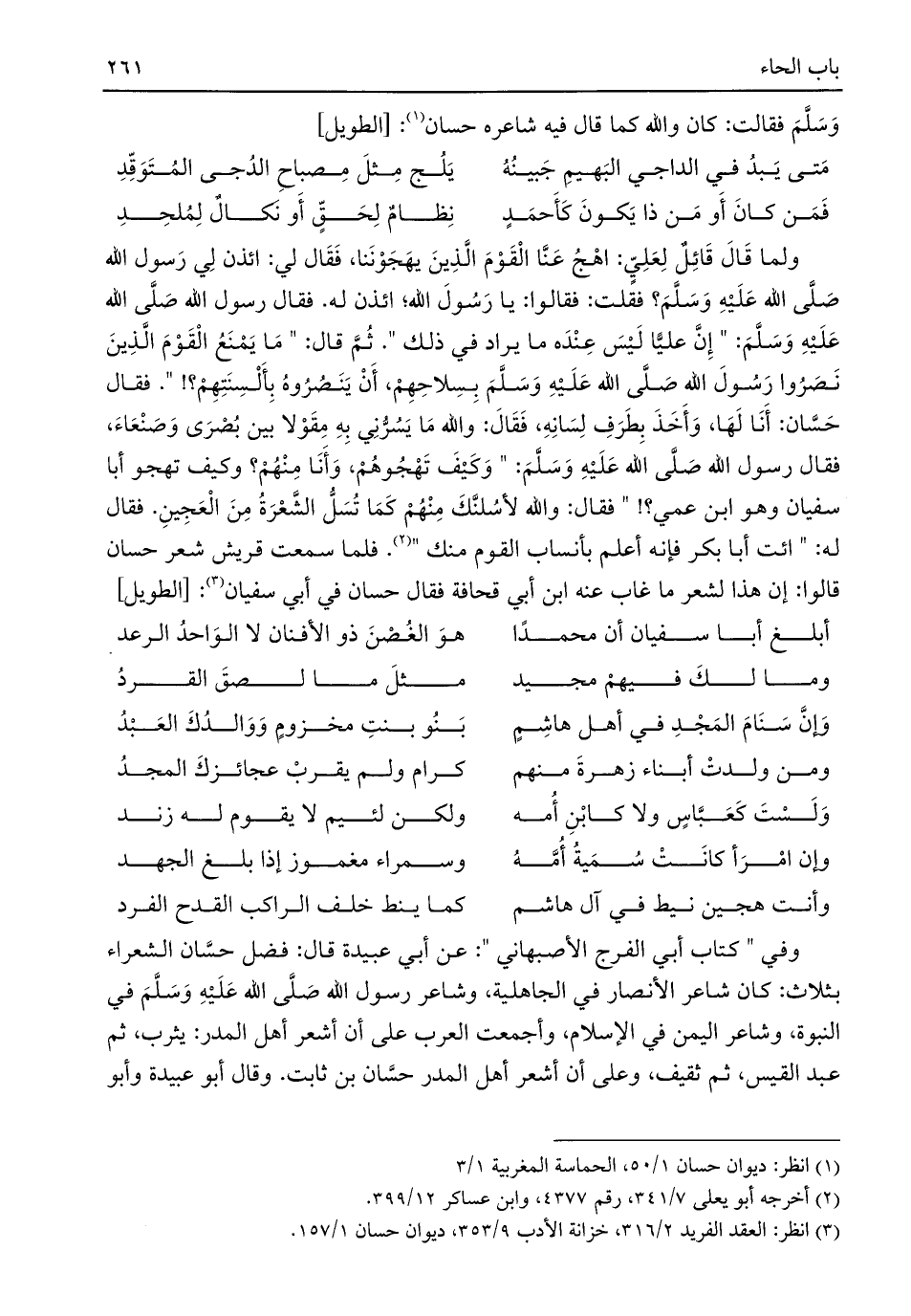 (¬١) انظر: ديوان حسان ١/ ٥٠، الحماسة المغربية ١/ ٣.