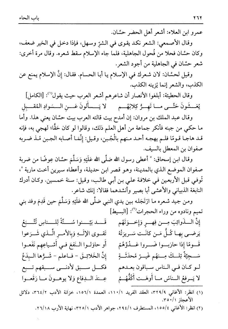 عمرو ابن العلاء: أشعر أهل الحضر حسَّان.