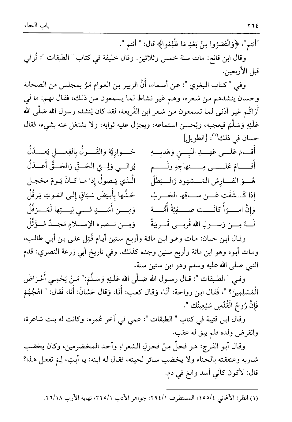 (¬١) انظر: الأغاني ٤/ ١٥٥، المستطرف ١/ ٢٩٤، جواهر الأدب ١/ ٣٢٥، نهاية الأرب ١٨/ ٢٦.