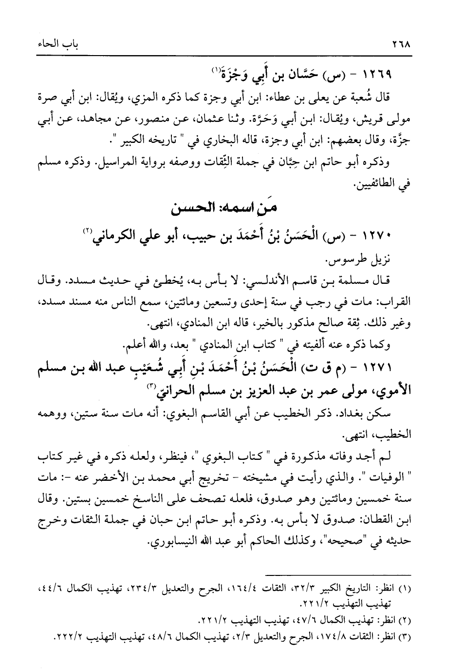 (¬١) انظر: التاريخ الكبير ٣/ ٣٢، الثقات ٤/ ١٦٤، الجرح والتعديل ٣/ ٢٣٤، تهذيب الكمال ٦/ ٤٤، تهذيب التهذيب ٢/ ٢٢١.