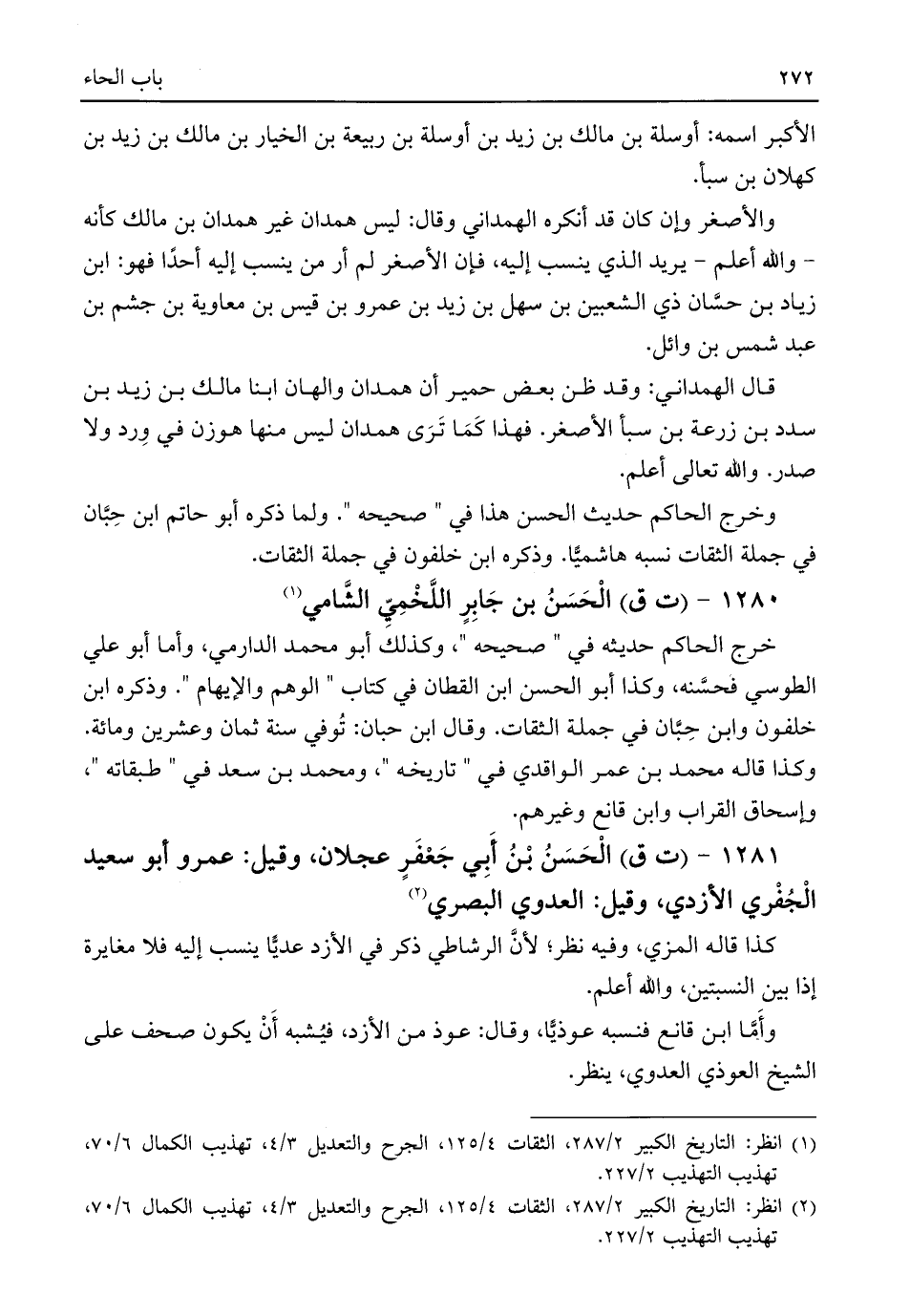 (¬٢) انظر: التاريخ الكبير ٢/ ٢٨٧، الثقات ٤/ ١٢٥، الجرح والتعديل ٣/ ٤، تهذيب الكمال ٦/ ٧٠، تهذيب التهذيب ٢/ ٢٢٧.