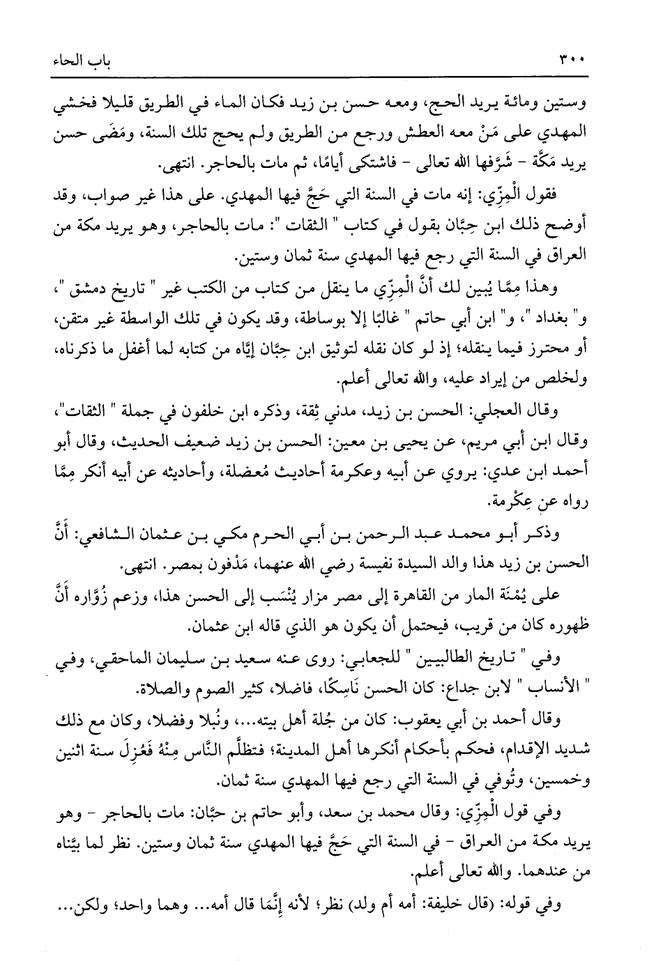 وفي قول الْمِزِّي: وقال محمد بن سعد، وأبو حاتم بن حبَّان: مات بالحاجر -وهو يريد مكة من العراق- في السنة التي حَجَّ فيها المهدي سنة ثمان وستين. نظر لما بيَّناه من عندهما. واللَّه تعالى أعلم.