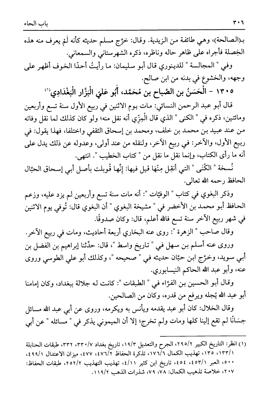 ١٣٠٥ - الْحَسَنُ بن الصَّباح بن مُحَمَّد، أَبُو عَلي الْبَزَّار الْبَغْدَادِي (¬١)