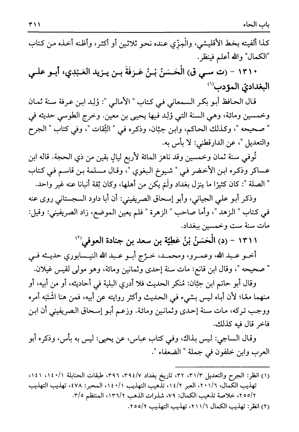 ١٣١٠ - (ت سي ق) الْحَسَنُ بْنُ عَرَفَةَ بن يزيد العَبْدِي، أبو علي البغداديّ المؤدب (¬١)