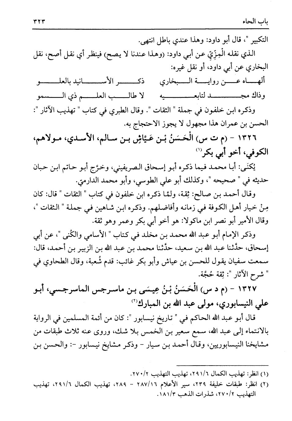 ١٣٢٦ - (م ت س) الْحَسَنُ بْن عَيَّاشٍ بن سالم، الأسدي، مولاهم، الكوفي، أخو أبي بكر (¬١)