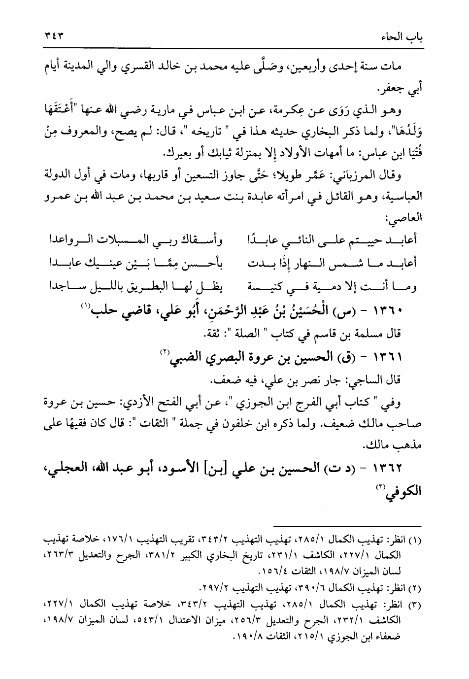 ١٣٦٠ - (س) الحُسَيْنُ بْنُ عَبْدِ الرَّحْمَنِ، أَبُو عَلي، قاضي حلب (¬١)