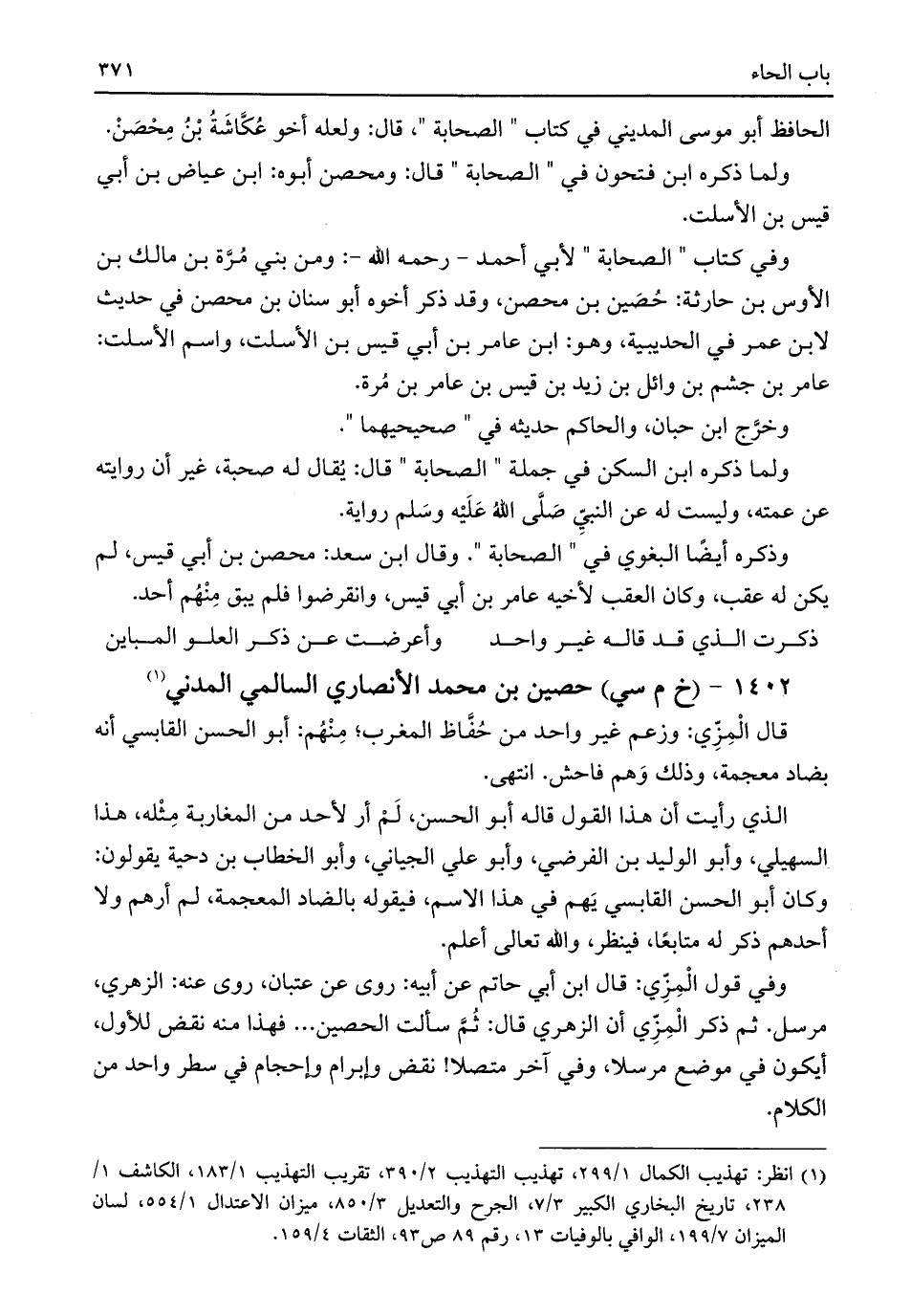 وفي قول الْمِزِّي: قال ابن أبي حاتم عن أبيه: روى عن عتبان، روى عنه: الزهري، مرسل. ثم ذكر الْمِزِّي أن الزهري قال: ثُمَّ سألت الحصين. . . فهذا منه نقض للأول، أيكون في موضع مرسلا، وفي آخر متصلا! نقض وإبرام وإحجام في سطر واحد من الكلام.