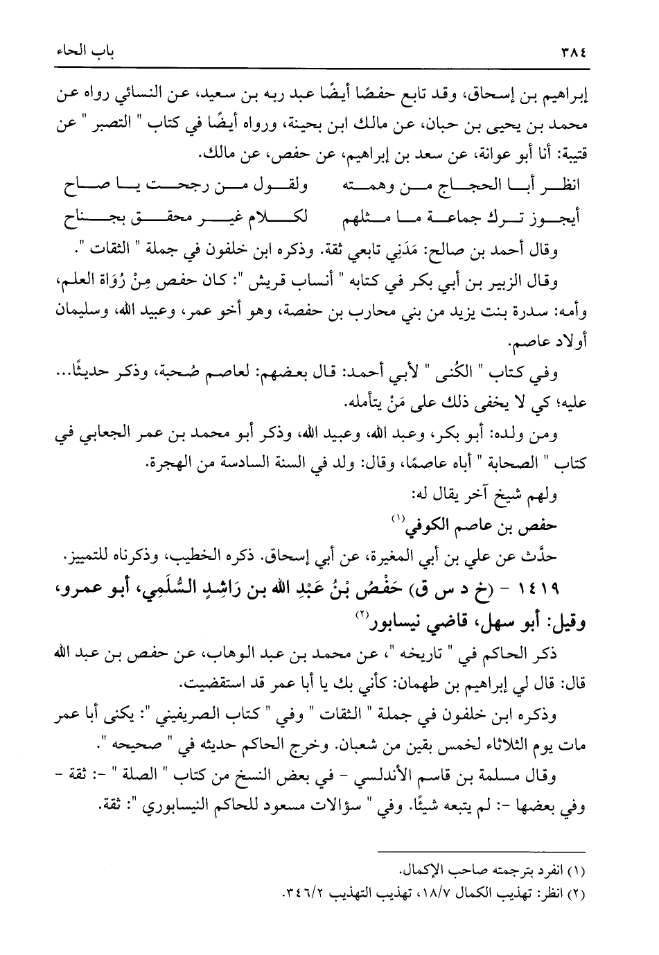 (¬٢) انظر: تهذيب الكمال ٧/ ١٨، تهذيب التهذيب ٢/ ٣٤٦.