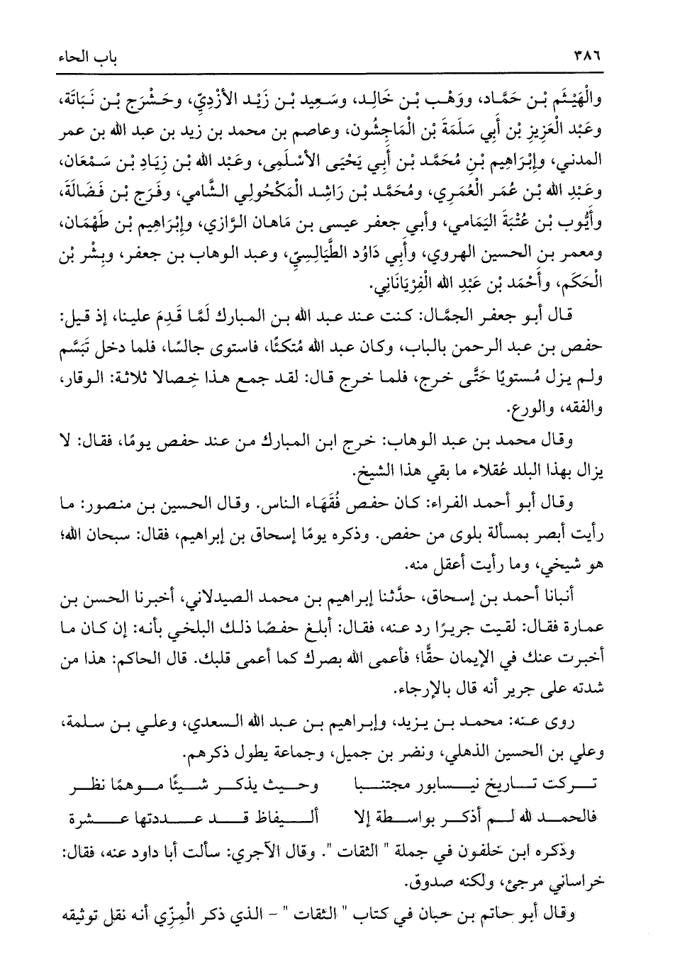 وقال أبو حاتم بن حيان في كتاب "الثقات" -الذي ذكر الْمِزِّي أنه نقل توثيقه
