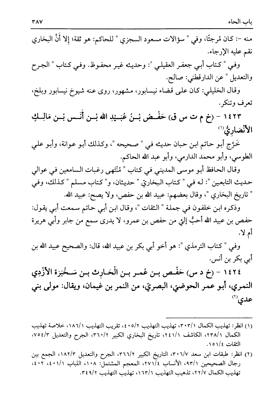 ١٤٢٤ - (خ د س) حَفْص بن عُمر بن الْحَارِث بن سَخْبَرَة الأزْدِي النمري، أبو عمر الحوضيّ، البصريّ، من النمر بن غيمان، ويقال: مولى بني عدي (¬٢)