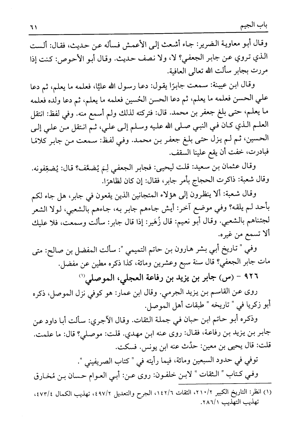 ٩٢٦ - (س) جابر بن يزيد بن رفاعة العجلي، الموصلي (¬١)