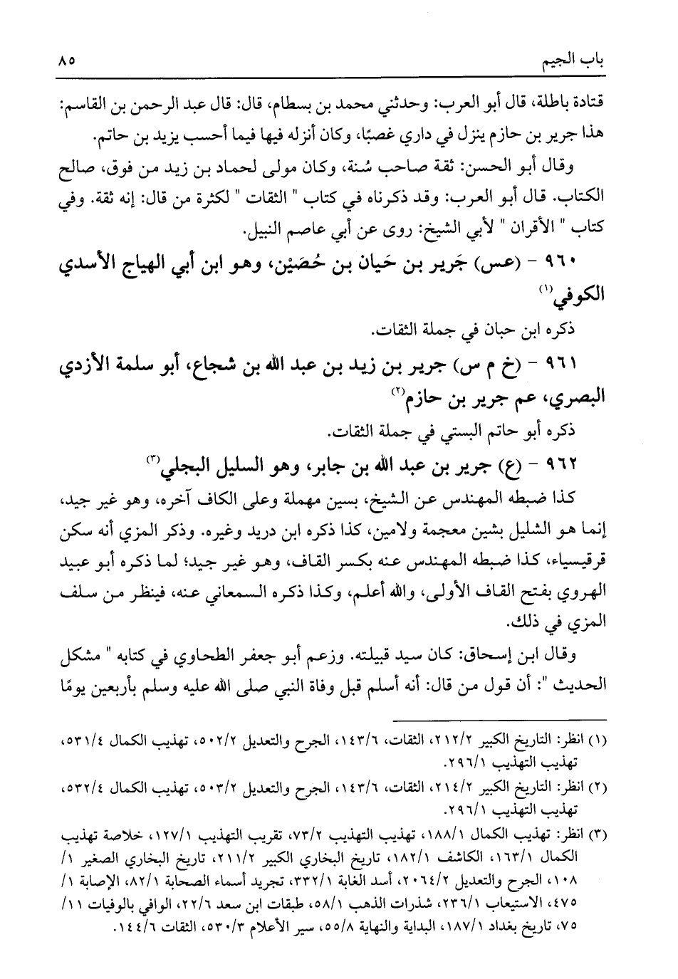 (¬١) انظر: التاريخ الكبير ٢/ ٢١٢، الثقات، ٦/ ١٤٣، الجرح والتعديل ٢/ ٥٠٢، تهذيب الكمال ٤/ ٥٣١، تهذيب التهذيب ١/ ٢٩٦.