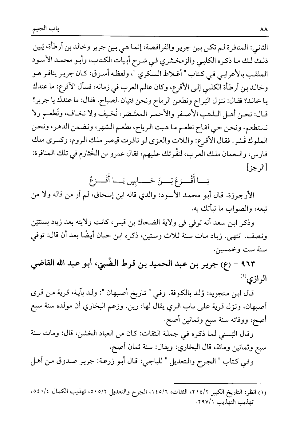 وفي كتاب "الجرح والتعديل" للباجي: قال أبو زرعة: جرير صدوق من أهل