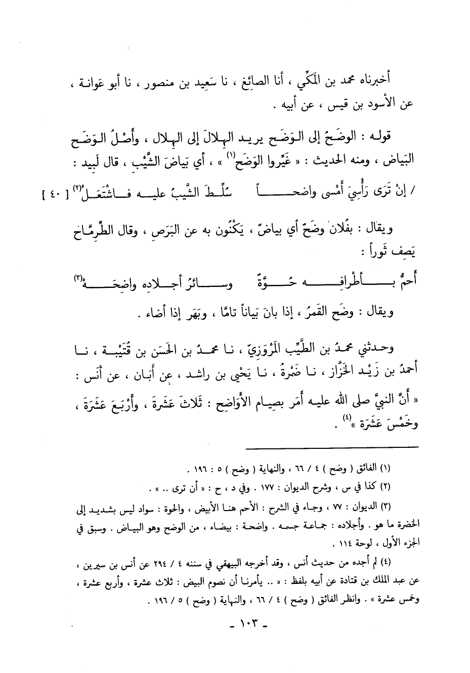 1 الفائق "وضح" "4/ 66" والنهاية "وضح" "196:5".