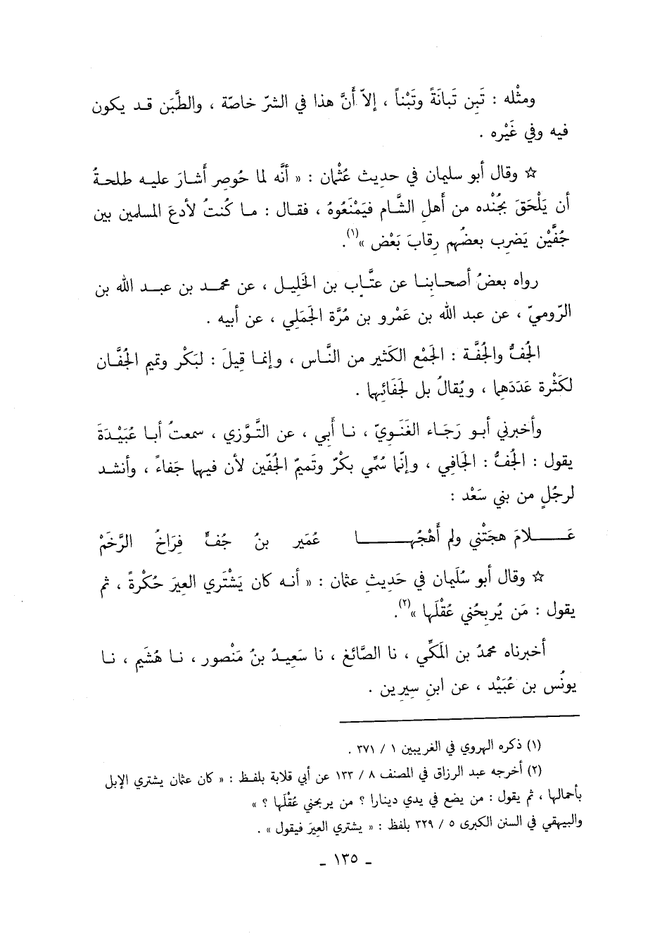 1 أخرجه عبد الرزاق في المصنف "8/ 133" عن أبي فلابة بلفظ "كان عثمان يشتريالإبل بأجملها, ثم يقول: من يضع في يدي دينارا؟ من يربحني عقلها؟