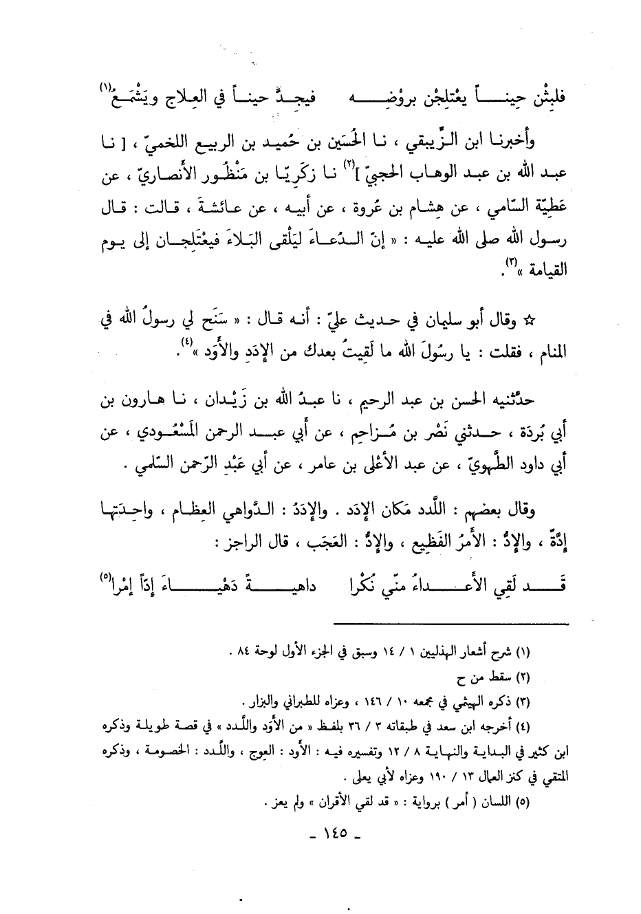 1 أخرجه ابن سعد في طبقاته "3/ 36" بلفظ "من الأود واللدد" في قصة طويلة وذكره ابن كثير في البداية والنهاية "8/ 12" وتفسيره فيه الأود: العوج, واللدد: الخصومة وذكره المتقي في كنز العمال "13/ 190" وعزاه لأبي يعلى.