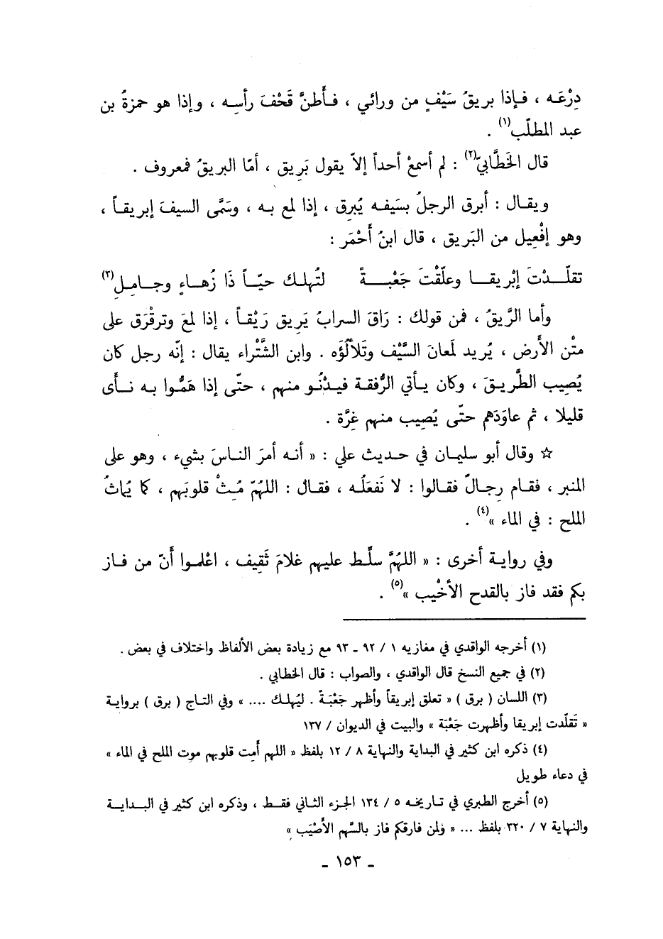 3 اللسان "برق" تعلق إبريق وأظهر جعبة ليهلك ..... " وفي التاج "برق" برواية "تقلدت إبريق وأظهرت جعبة" والبيت في الديوان "137".