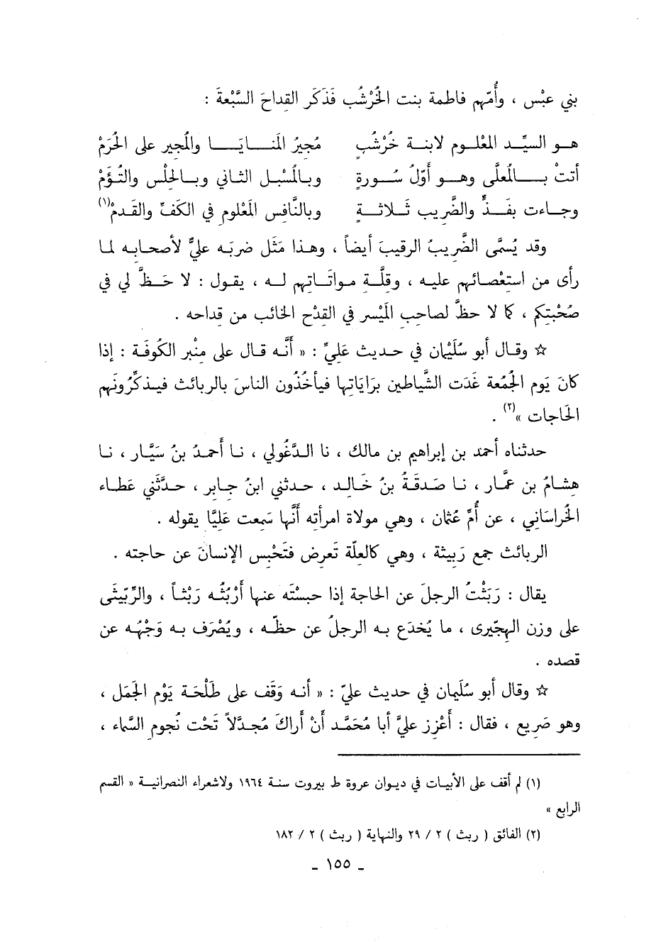 1 لم أقف على الأبيات في ديوان عروة ط بيروت سنة 1964 ولا شعراء النصرانية "القسم الرابع.