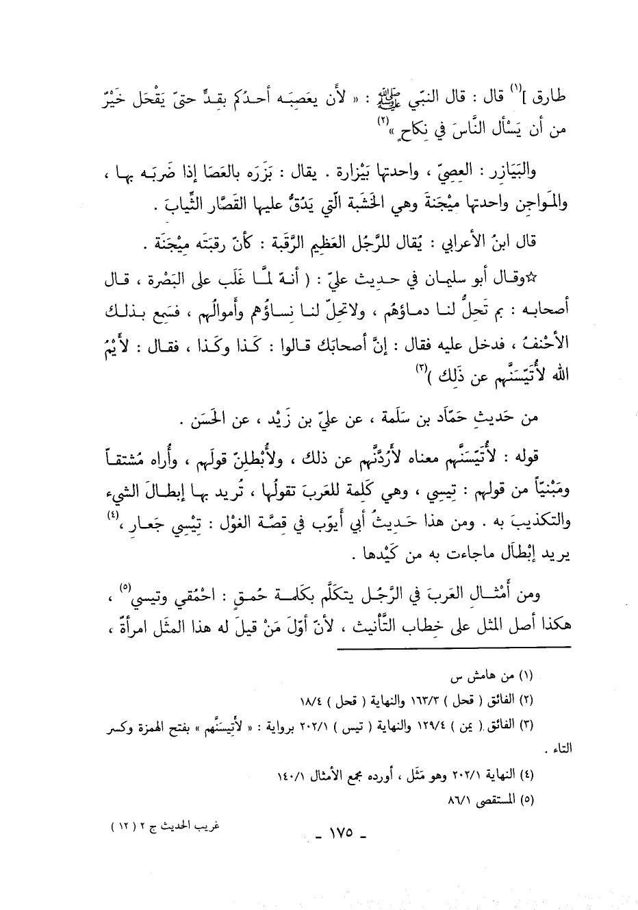 طارق 1 قَالَ قَالَ النَّبِيُّ صَلَّى اللَّهُ عَلَيْهِ وَسَلَّمَ: "لأَنْ يَعْصِبَهُ أَحَدُكُمْ بِقَدٍّ حَتَّى يَقْحَلَ خَيْرٌ مِنْ أَنْ يَسْأَلَ النَّاسَ فِي نِكَاحٍ" 2.