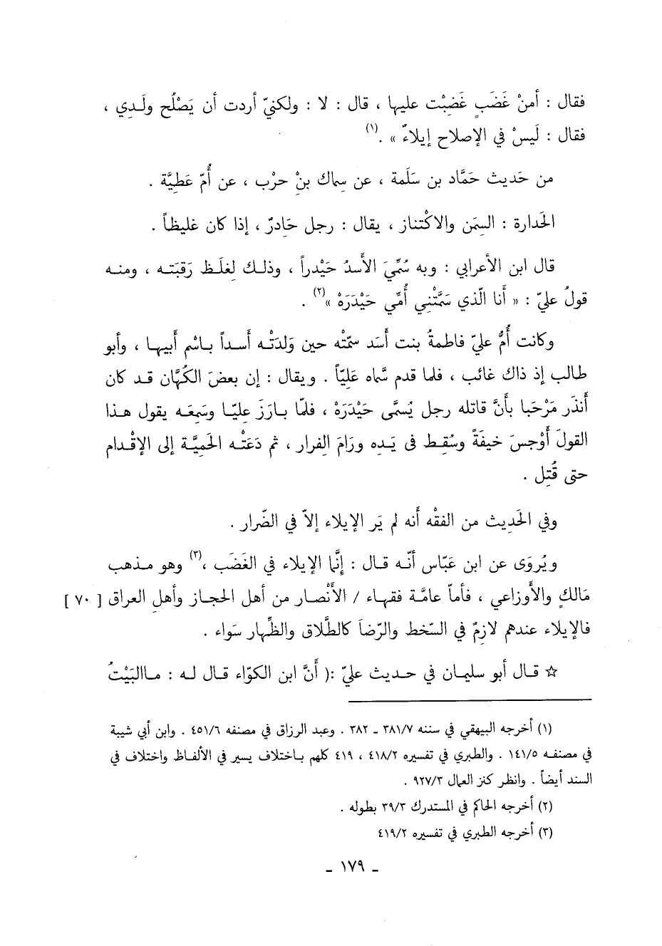 ويروى عَنِ ابْنِ عَبَّاسٍ أَنَّهُ قَالَ إنما الإيلاء في الغضب 3 وهو مذهب مالك والأوزاعي فأما عامة فقهاء / الأنصار من أهل الحجاز وأهل العراق فالإيلاء عندهم لازم في السخط والرضا كالطلاق والظهار سواء. [70]